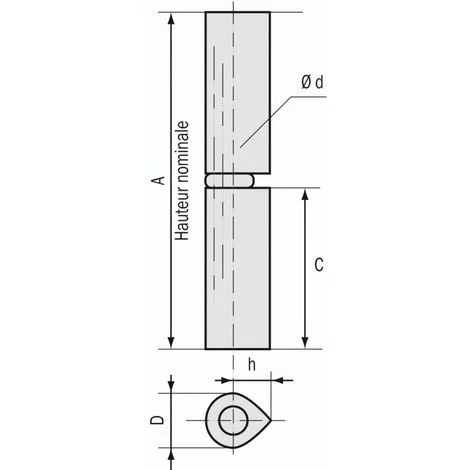Paumelles à souder symétrique, sans main. Section ogivale. Usinées à partir de profilés en acier étiré.